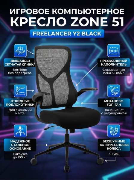 Кресло компьютерное игровое ZONE 51 FREELANCER Y2 Black