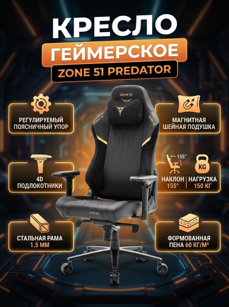 Компьютерное геймерское кресло Zone 51 Predator - Обзор ТОП-10 лучших ортопедических кресел 2025 🏆: Обзор и рейтинг